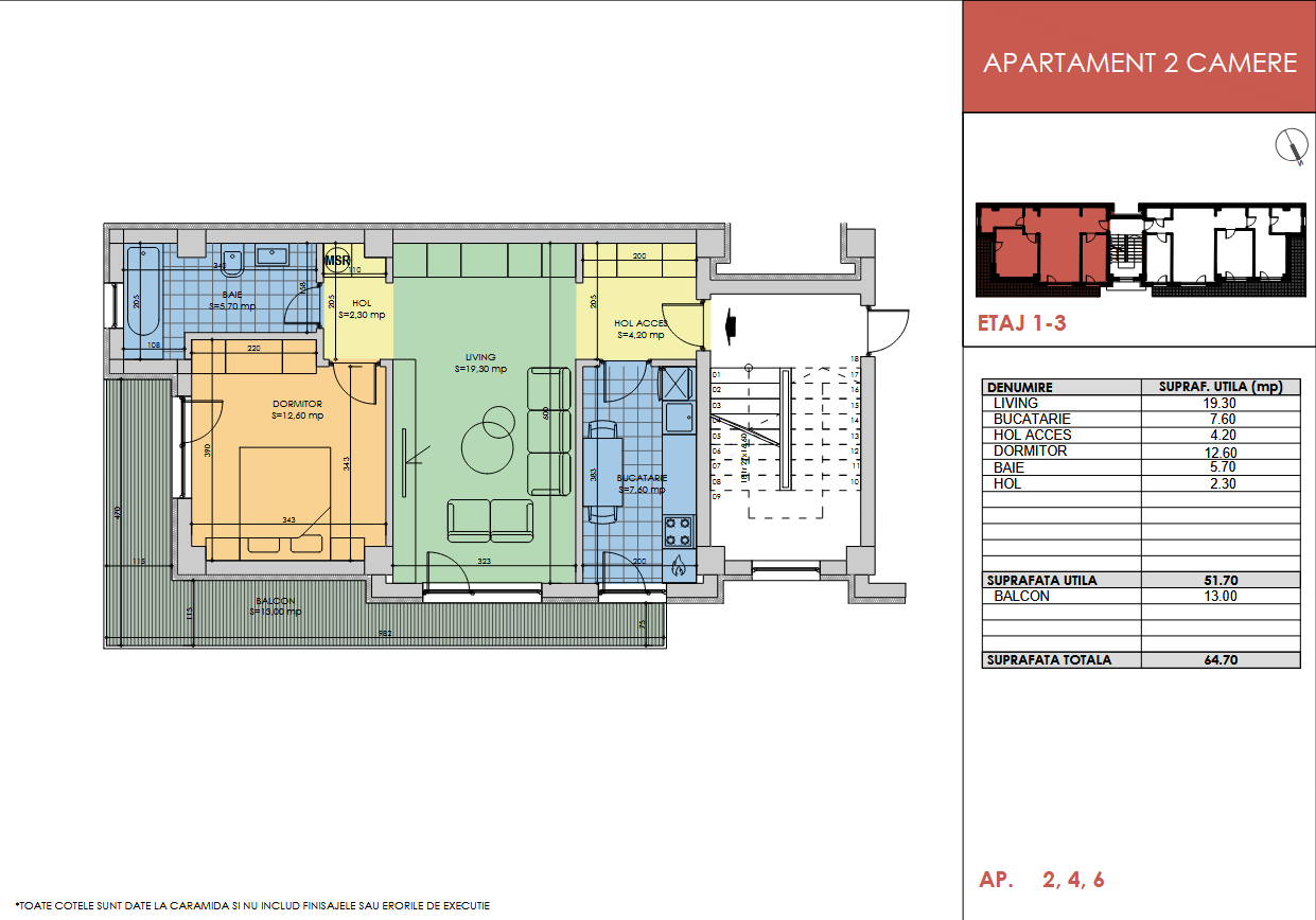 | 4 | 2 | Etaj 2 | 51.70 | 64.70 | 155.280 € |