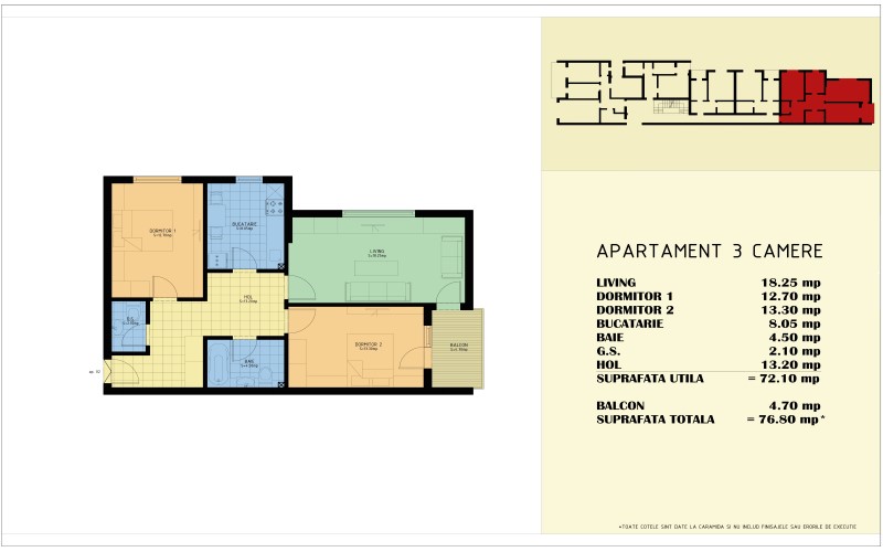 | 2 | 3 - etaj 1 | 76,80 | 87,00 | Vandut |