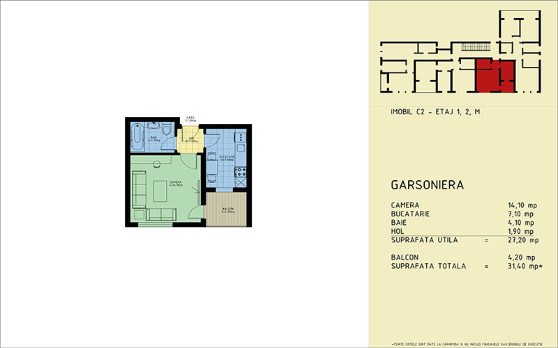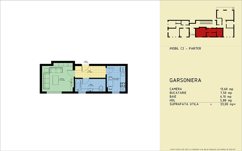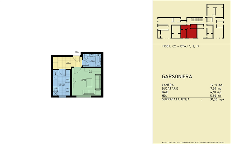 La etajele superioare se poate opta la alegere pentru: Apartament trei camere, garsoniera sau apartament doua camere