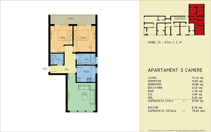 | 7 | 3 - etaj 1 | 70,60 | 82,10 | Vandut |