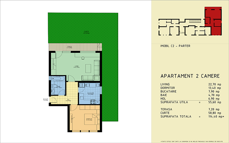 | 3 | 2 - Parter, Terasa si Curte | 55,60 + Curte si Terasa 66,30 | 140,21 | Vandut |