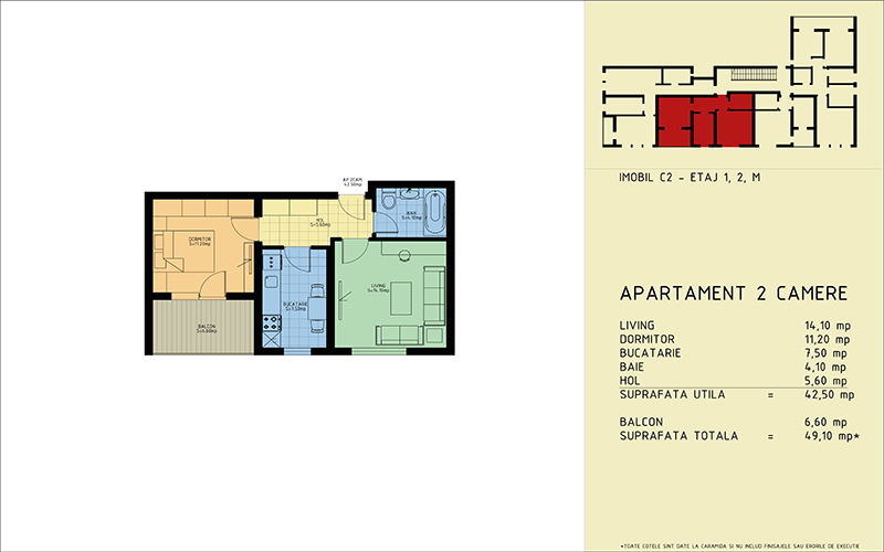 | 5 | 2 - etaj 1 | 49,10 | 61,10 | Vandut |