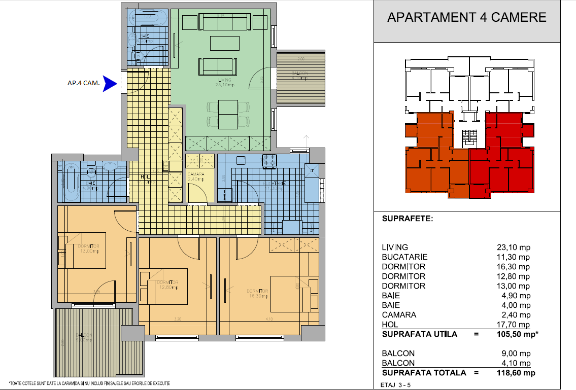 | 4 | 3 - etaj 2 | 71,20 | 80,20 | Vandut |