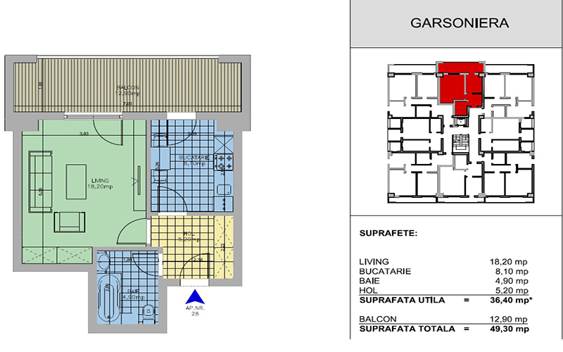 | 29 | 1 - etaj 6 | 36,40 | 46,70 | Vandut |