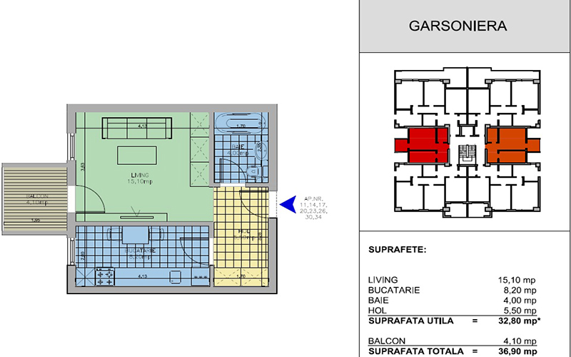 | 14 | 1 - etaj 4 | 32,80 | 36,90 | Vandut |
