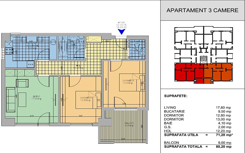 | 9 | 3 - etaj 3 | 71,20 | 80,20 | Vandut |