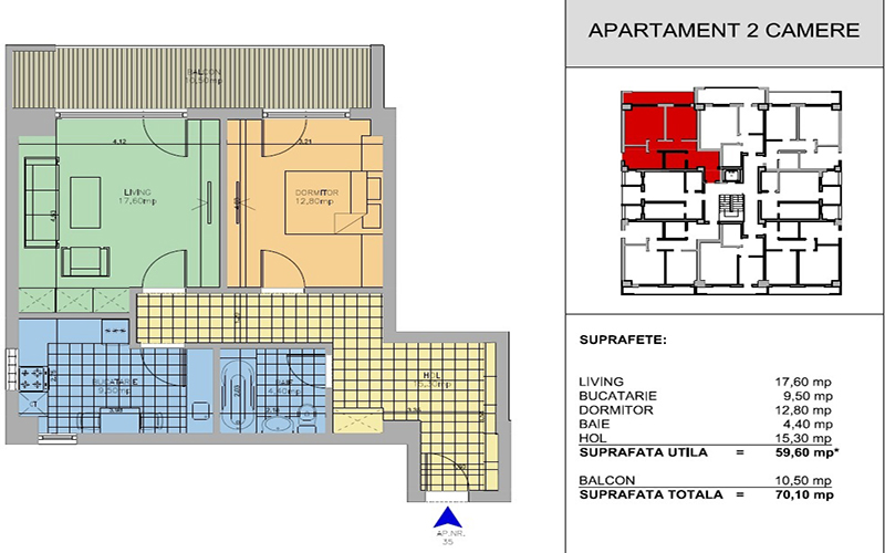 | 32 | 2 - etaj 6 | 59,60 | 70,10 | Vandut |