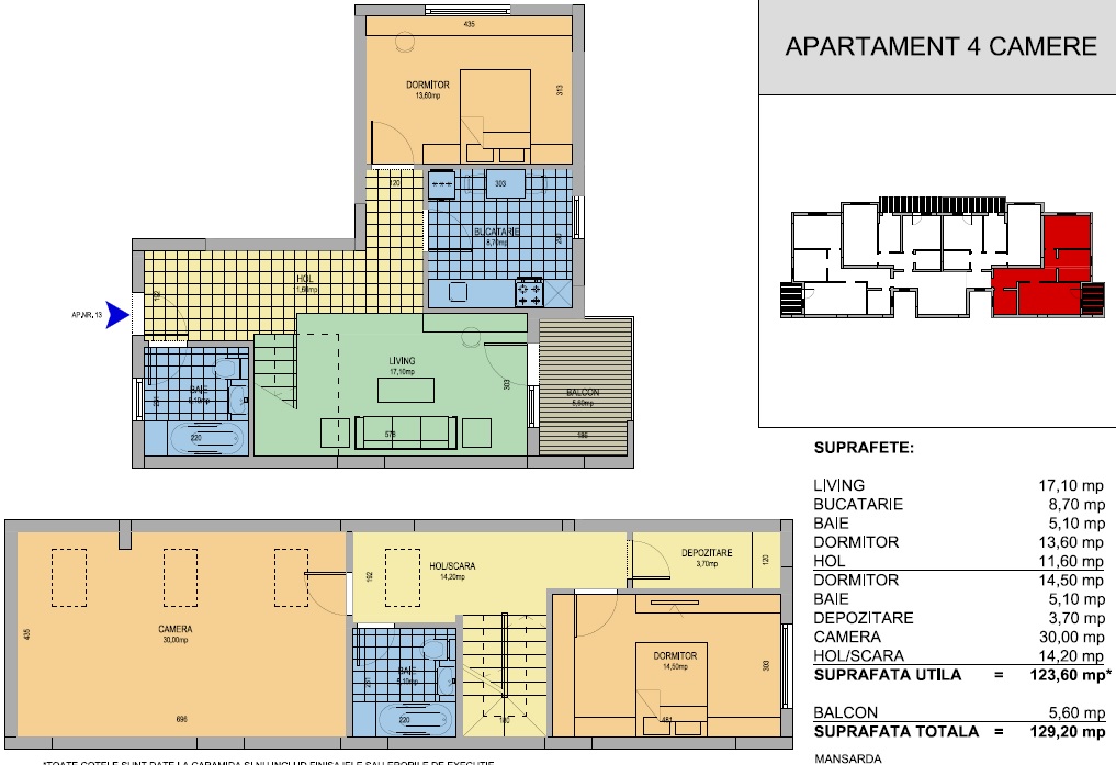 | 13 | 4 - mansardă | 123,60 | 129,20 | Vandut |